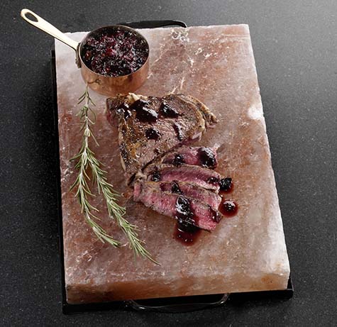 For this recipe, you heat the salt block and use it as a cooking surface. I like to set the heated block on the table (on top of a trivet or a heat-resistant surface) and have everyone cook their own meat the way they like it.